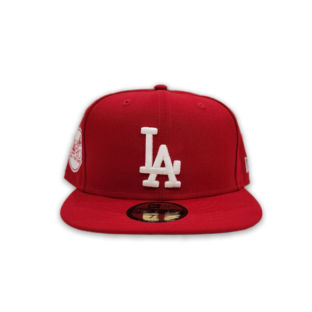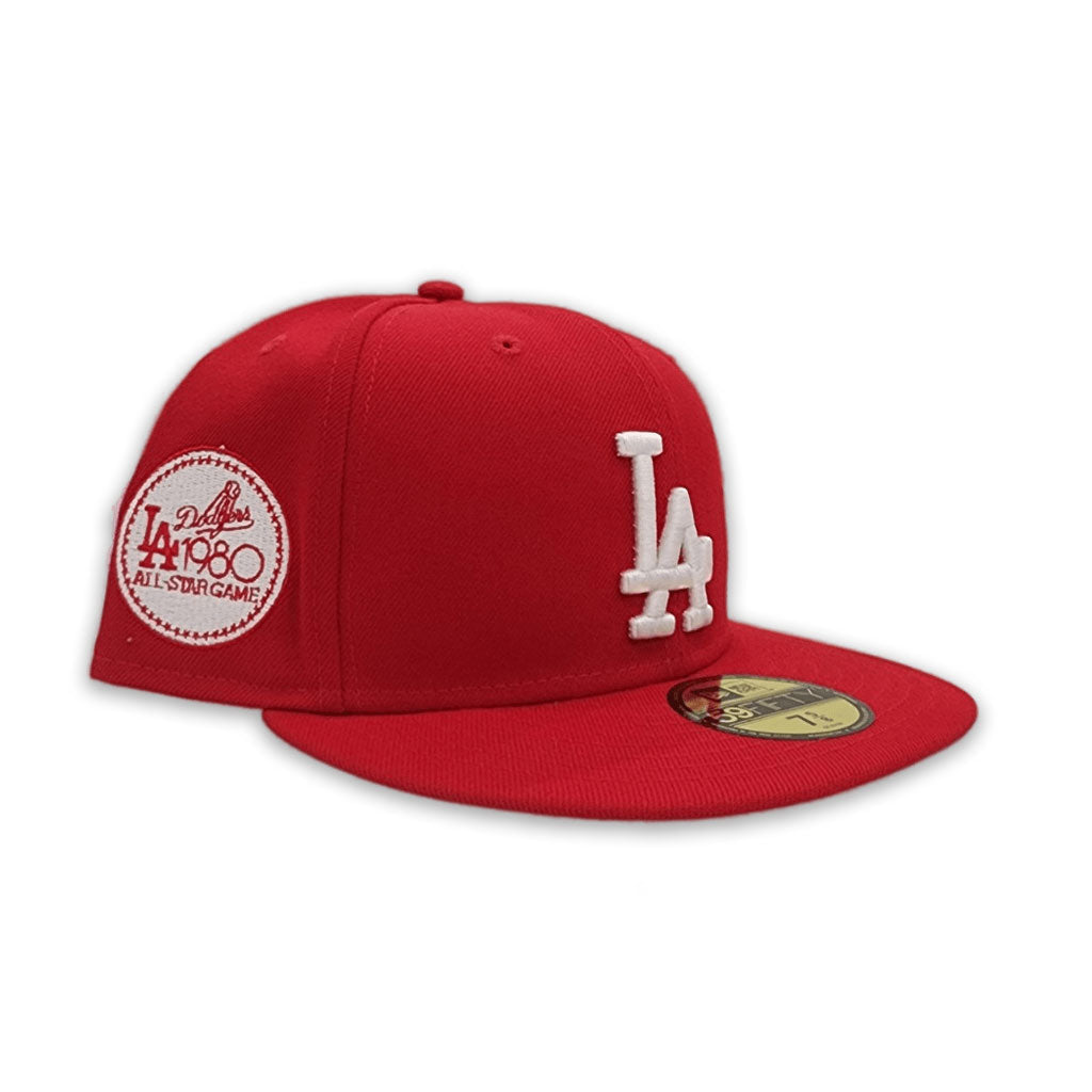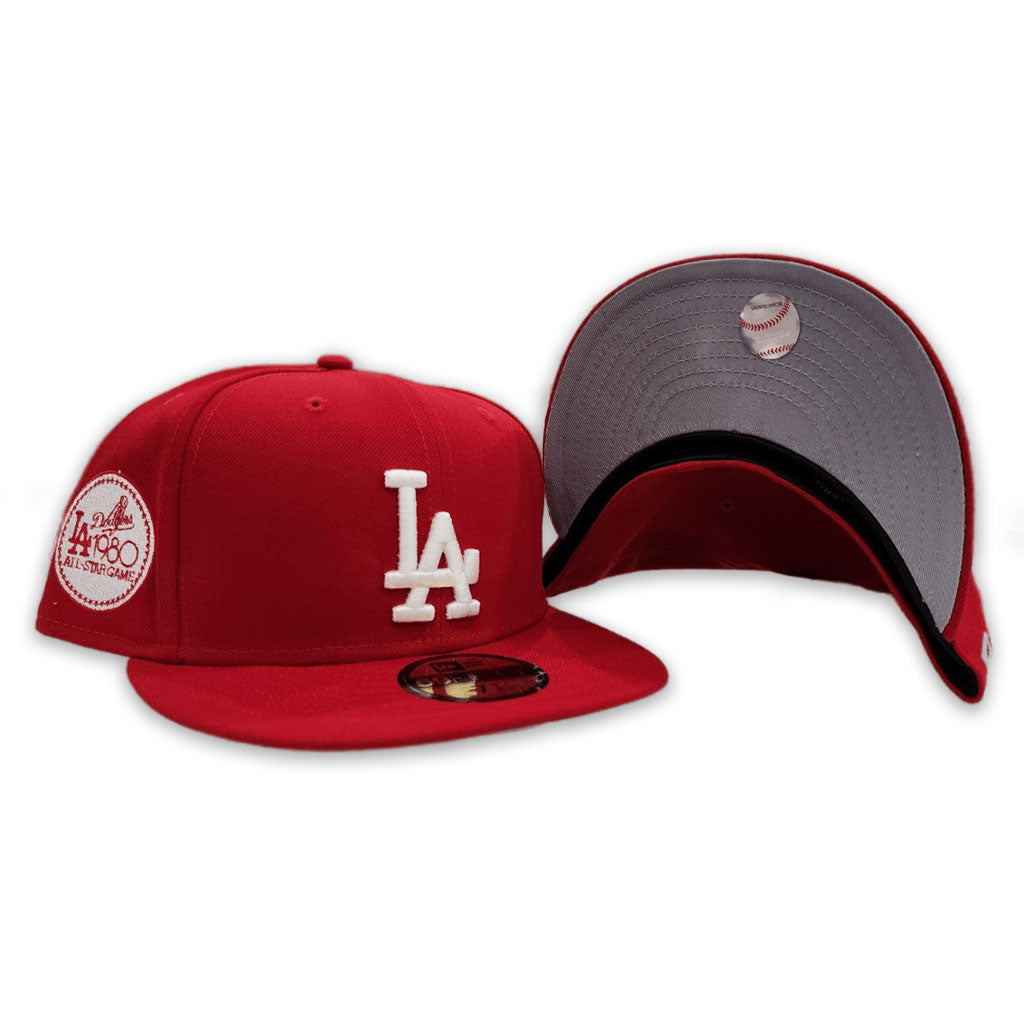 Show your support for the Los Angeles Dodgers with the exclusive New Era Red Los Angeles Dodgers Gray Bottom 1980 All-Star Game Side Patch 59FIFTY Cap. This fitted cap showcases the classic Dodgers โLAโ logo on the front, celebrating one of MLBโs most iconic teams. The structured crown and flat visor offer a sleek, modern style, while the 100% wool construction ensures lasting comfort and durability.