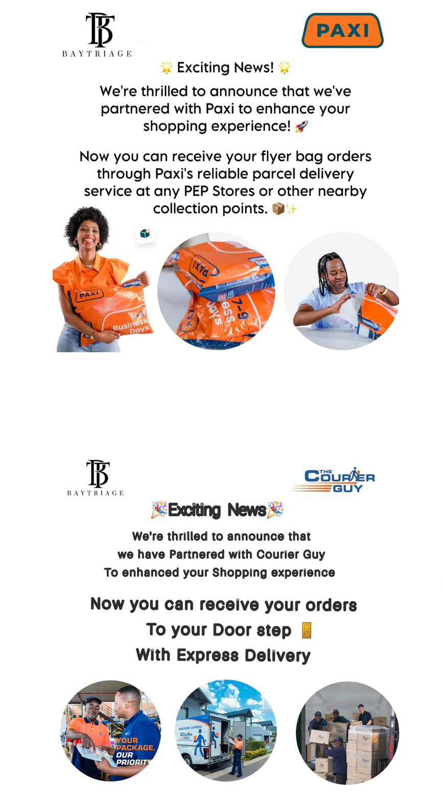 At Baytriage.co.za, we strive to provide our customers with high-quality products and an excellent shopping experience. Due to the exclusive nature of our inventory and the unique sourcing of our products, we have established a strict No Refund policy.